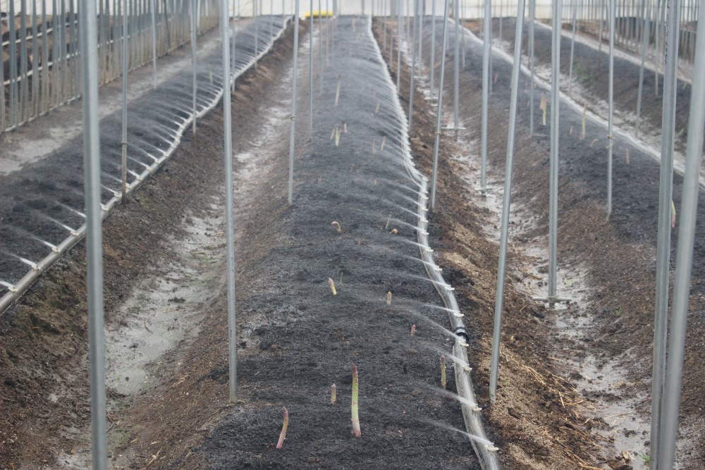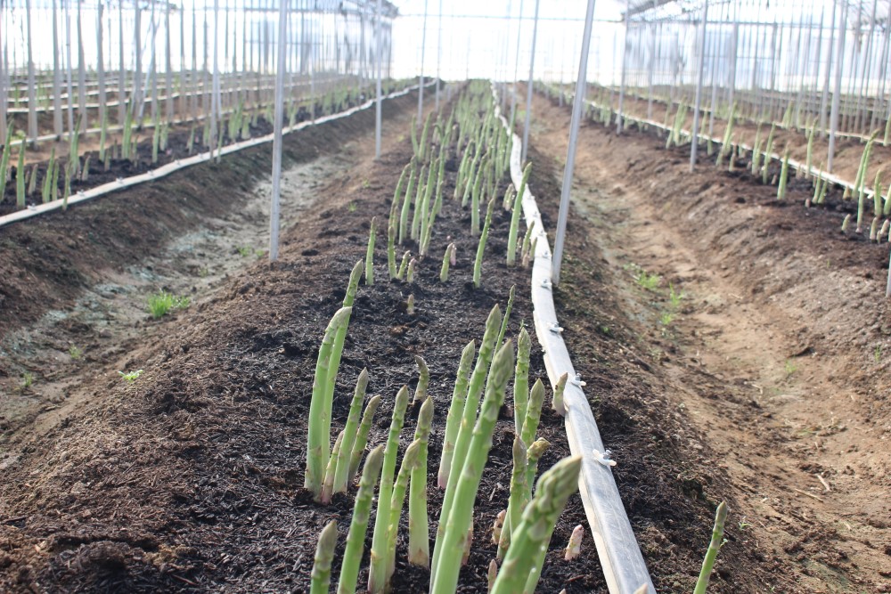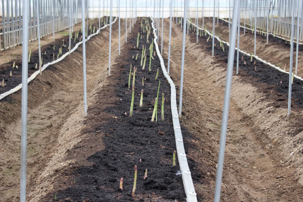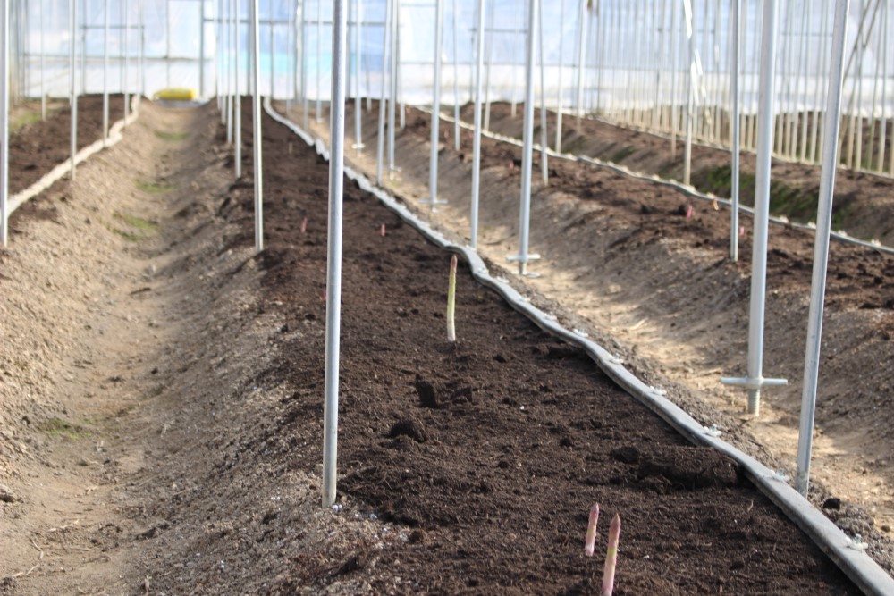 ハウス内の様子です。 ハウスのサイドは開けていますが、アスパラガスが伸びてきています。 灌水は、まだ行っていません。 2021年2月8日撮影 |