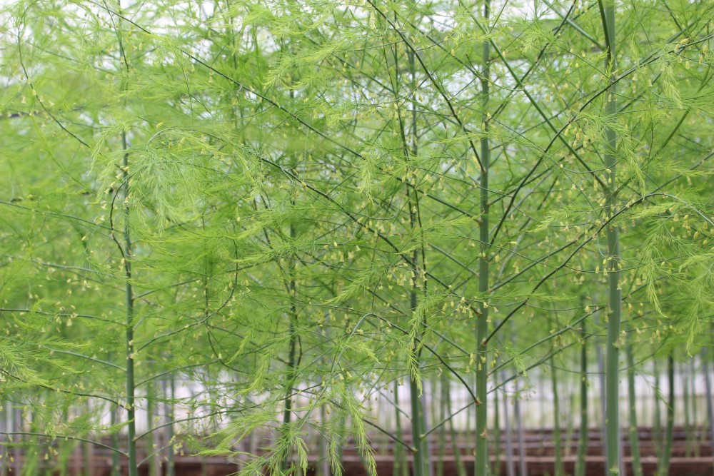 アスパラガスの花が満開です。 擬葉が展開して、花も満開になっています。 夏秋取りを始めたいと思います。 2021年5月20日撮影 |